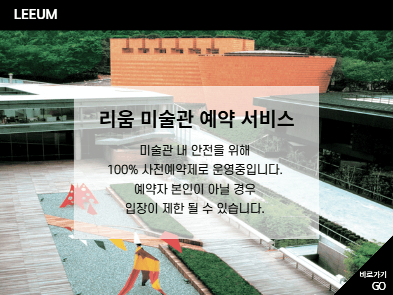 리움 미술관은 예술적인 건축물 안에서 예술품을 감상할 수 있는 공간입니다. 리오보타, 장누벨, 렘쿨하스 등 세계적인 건축가가 만든 공간과 그 안에 삼성문화재단이 소장하고 있는 국보와 고미술품을 비롯해 국내 외 유명 작가들의 작품이 담겨 있습니다. 리움미술관은 100% 사전예약으로 꼭 예약 후 방문하시기 바랍니다.